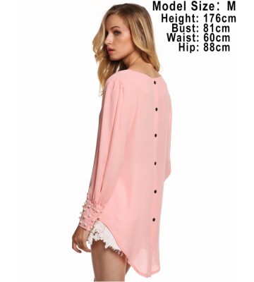 Fashion Women Chiffon O-Neck Long Sleeve Asymmetrical Hem Beads Blouse Tops