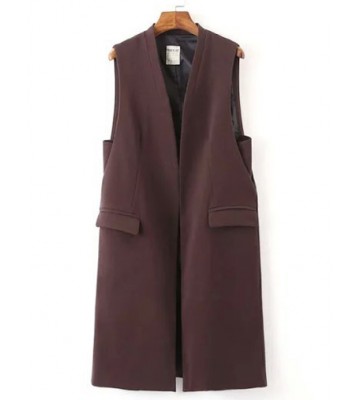 Modish Flap Pocket Longline Sleeveless Blazer with Open Front