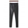 Comfy Elastic Waist Lining Fleece Skinny PU Leggings in Black Size:S-L