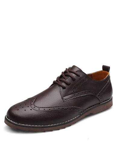 Baroque Perforate Trim Lace-Up Shoes in Pure Color